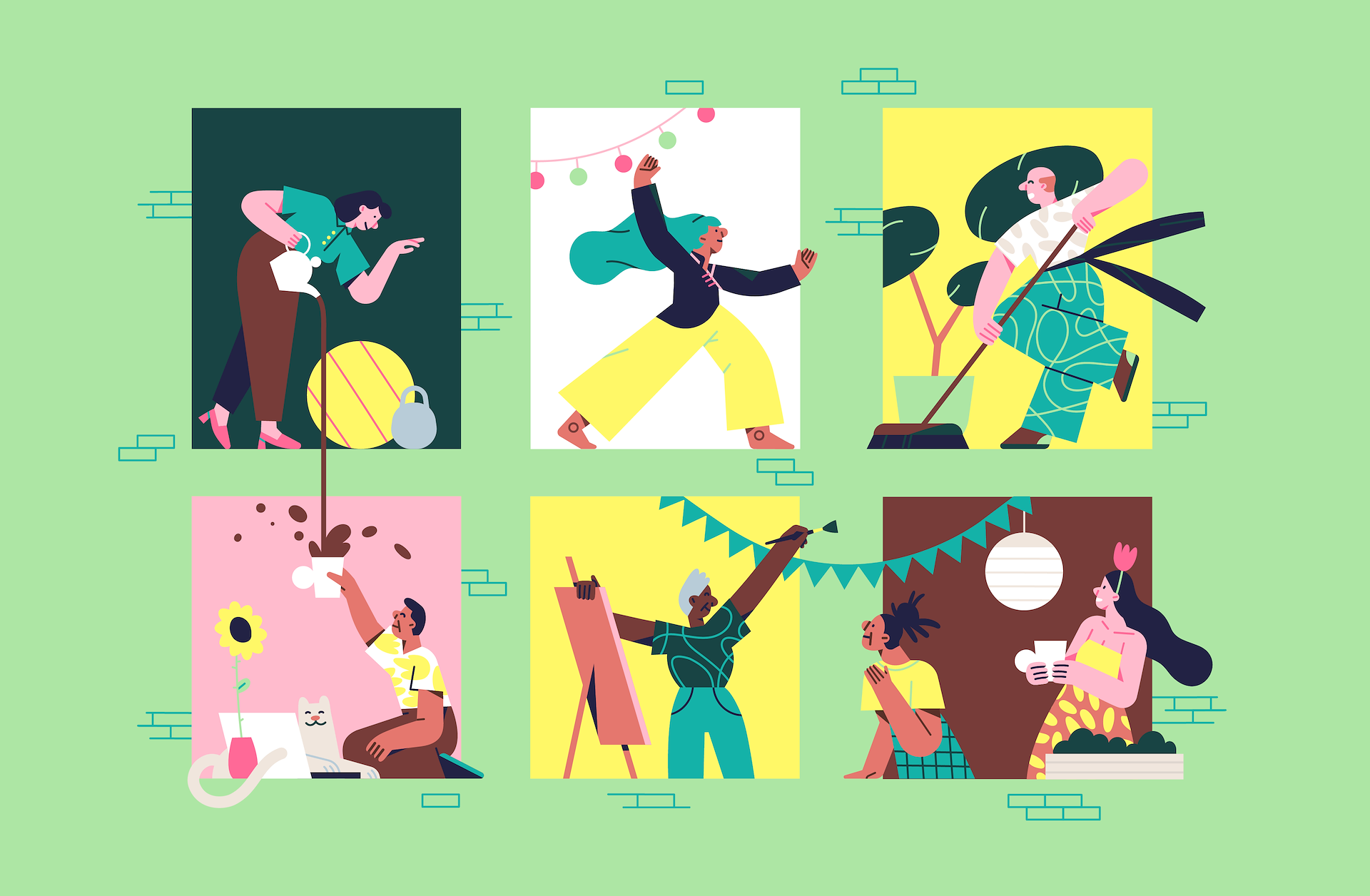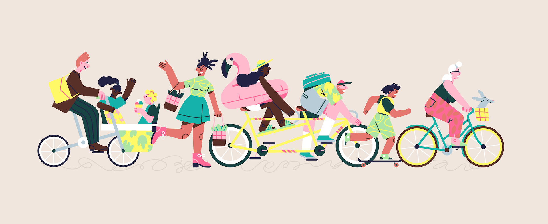 Illustrations are reflecting life in this new neighborhood. Activity, closeness to nature, sustainability and togetherness are key points of this district. Families have a chance to participate in decision making in urban planning. Open space quarters for all ages to enjoy active lifestyle, nearly car free city, urban gardening, inside/ outside co- working spaces, and meeting points for cultural activities will going to be the new "normal" when we're going to think of how the future city must look like!