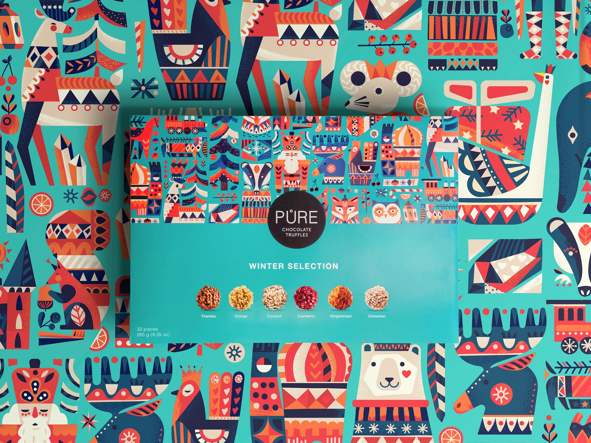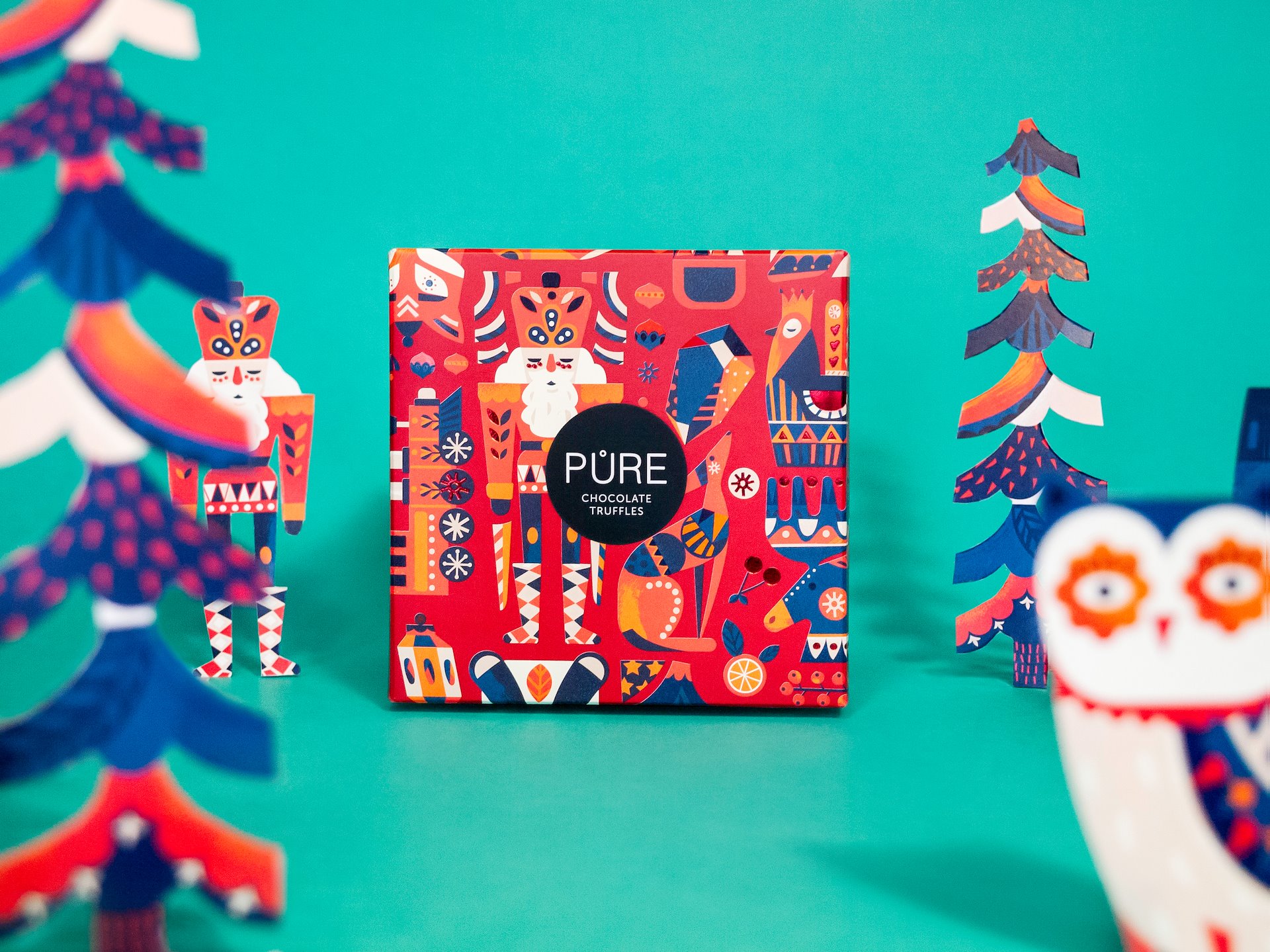 We were invited to make a special edition Christmas themed illustrations for this years holiday packaging. We got inspired by vintage Scandinavian Christmas decorations and fairy tale illustrations with nature and wild animals.