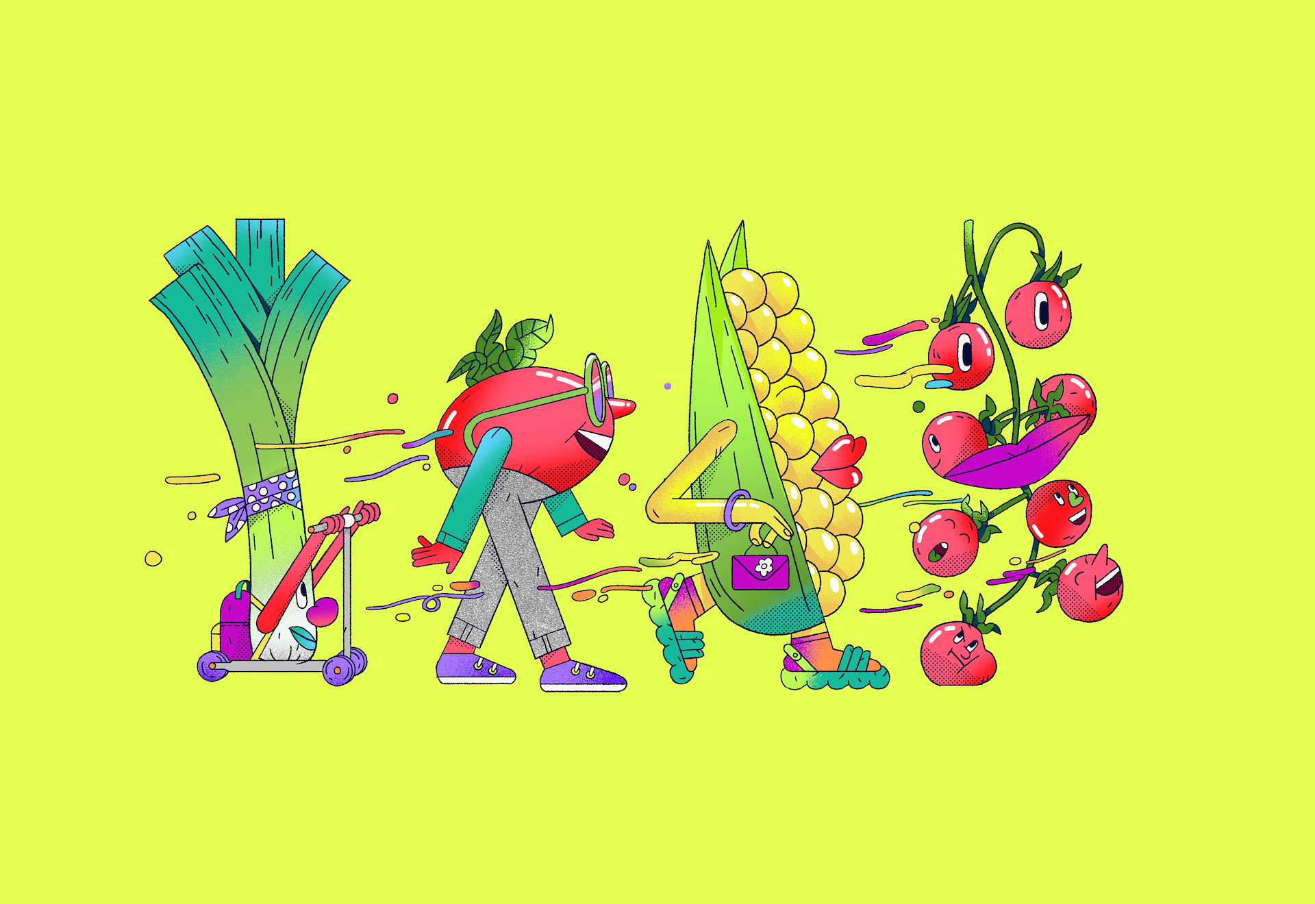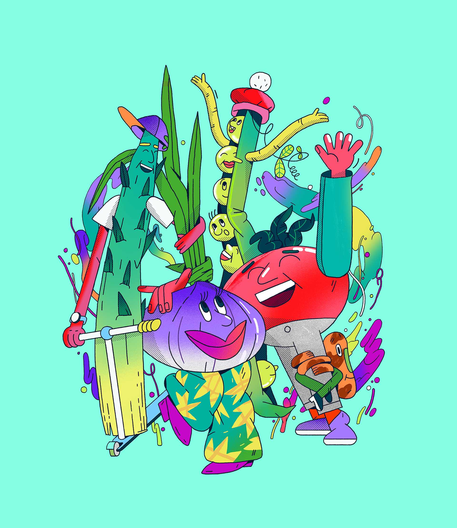 I was invited to illustrate vegetables for a promotion campaign and invite people to check out the "Plants & Friends" app and find places where delicious plant-based food is served!