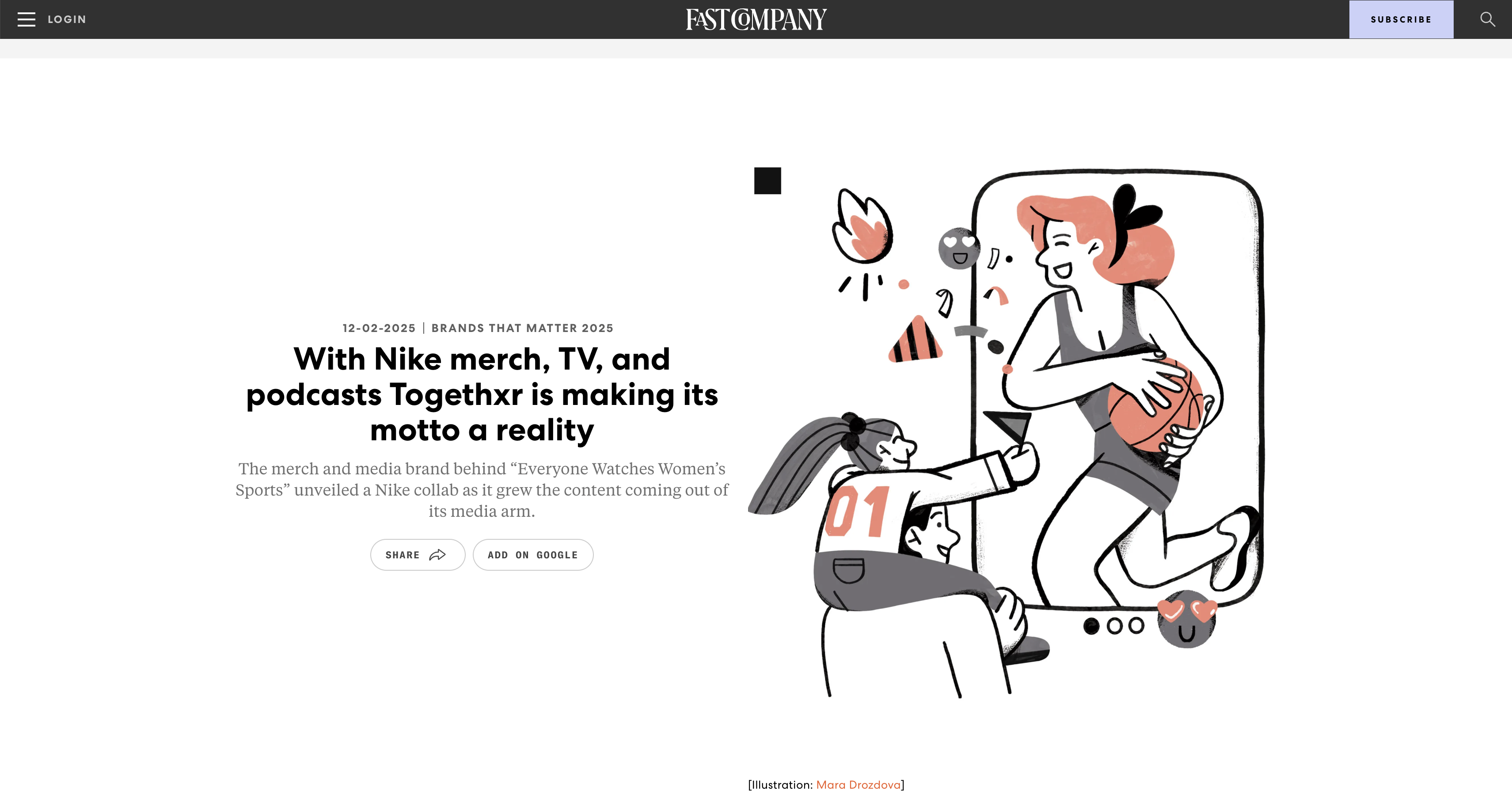 While Togethxr, a platform launched to amplify visibility and coverage of women’s sports. And it’s growing fast! As a sports nerd this was my favorite topic to cover!