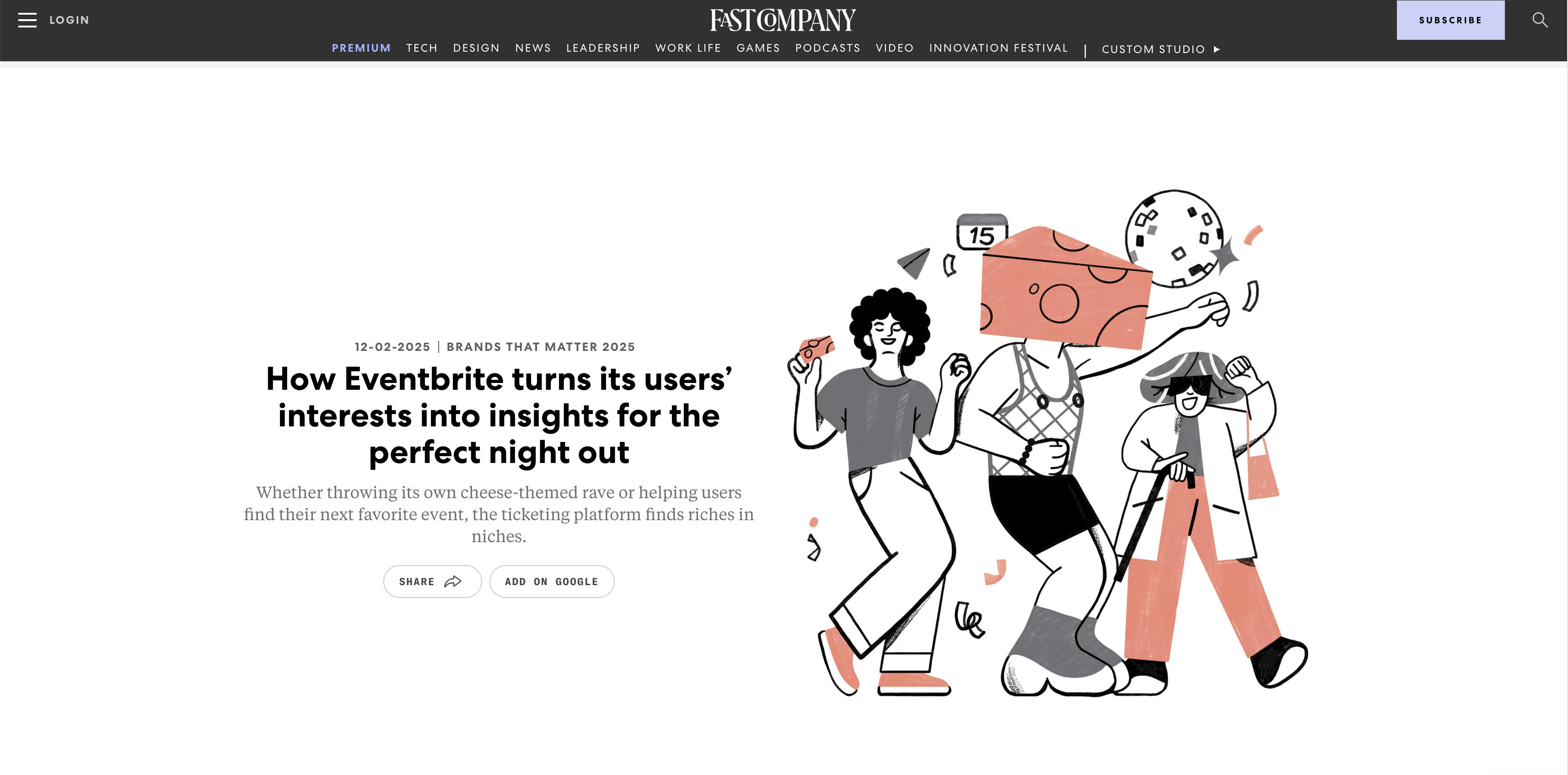 The visuals explore standout moments, including Eventbrite’s “Cheese Rave,” a niche, multi-sensory event blending artisanal gourmet cheese tastings with techno music.