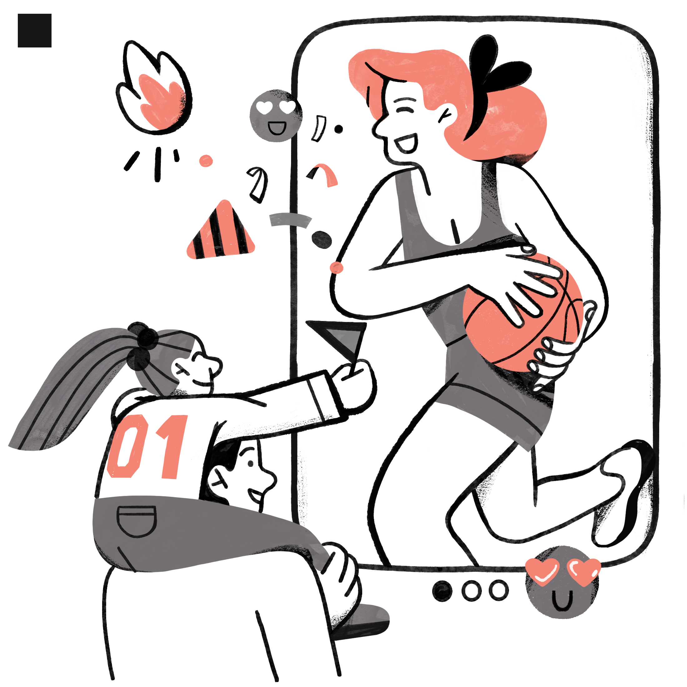 Another illustration focuses on how the NBA empowers creators to produce engaging social content and drive interaction through its app.